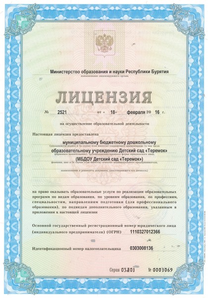 | Полное наименование образовательной организации* | Муниципальное бюджетное дошкольное образовательное учреждение Детский сад “Теремок” |